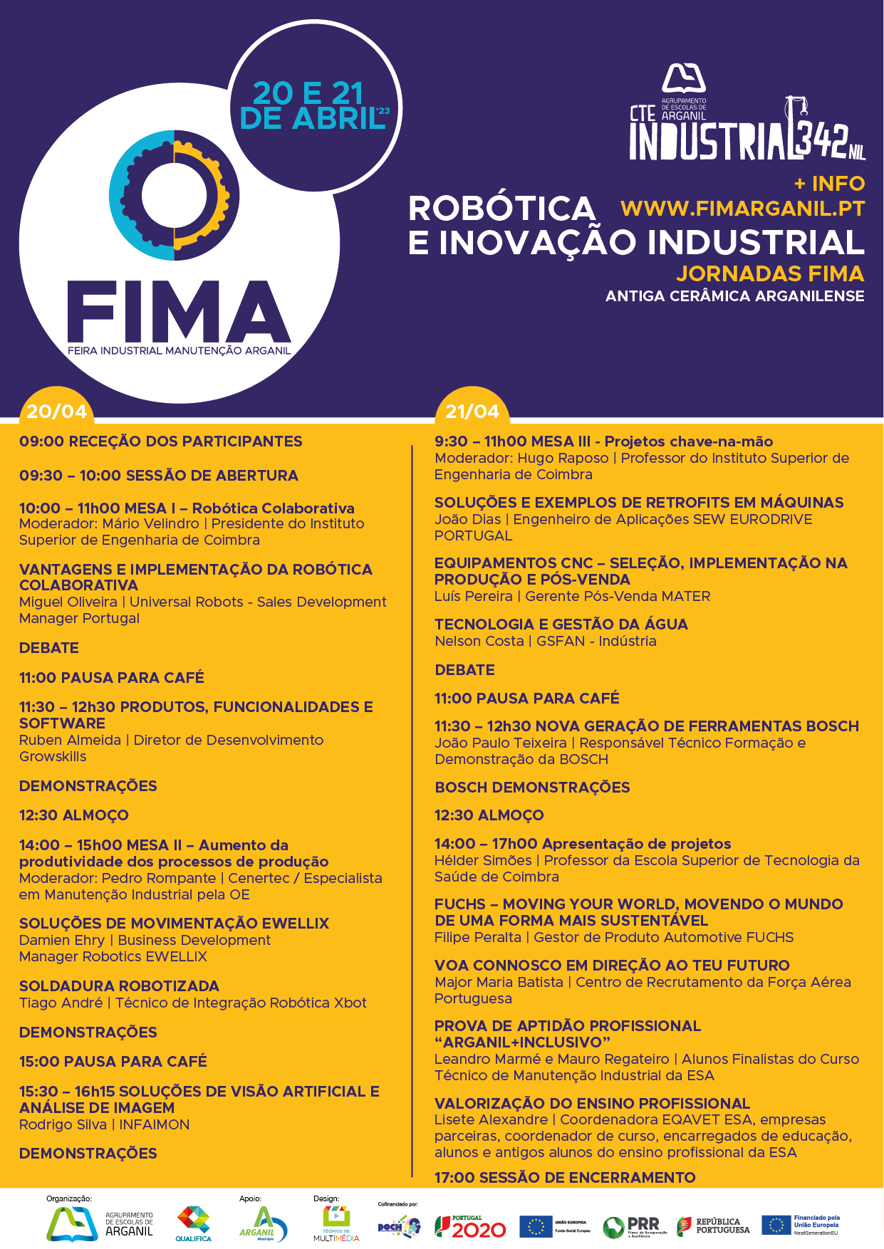 As Jornadas Técnicas FIMA surgem no seguimento da 1.º edição da FIMA – Feira de Manutenção Industrial – um projeto dos alunos do Curso Técnico de Manutenção Industrial – Variante Mecatrónica, da Escola Secundária de Arganil. As Jornadas Técnicas FIMA estão agendadas para os dias 20 e 21 de abril, na antiga Cerâmica Arganilense e destinam-se a todos os profissionais e estudantes das áreas da mecânica, eletricidade, automação e robótica.